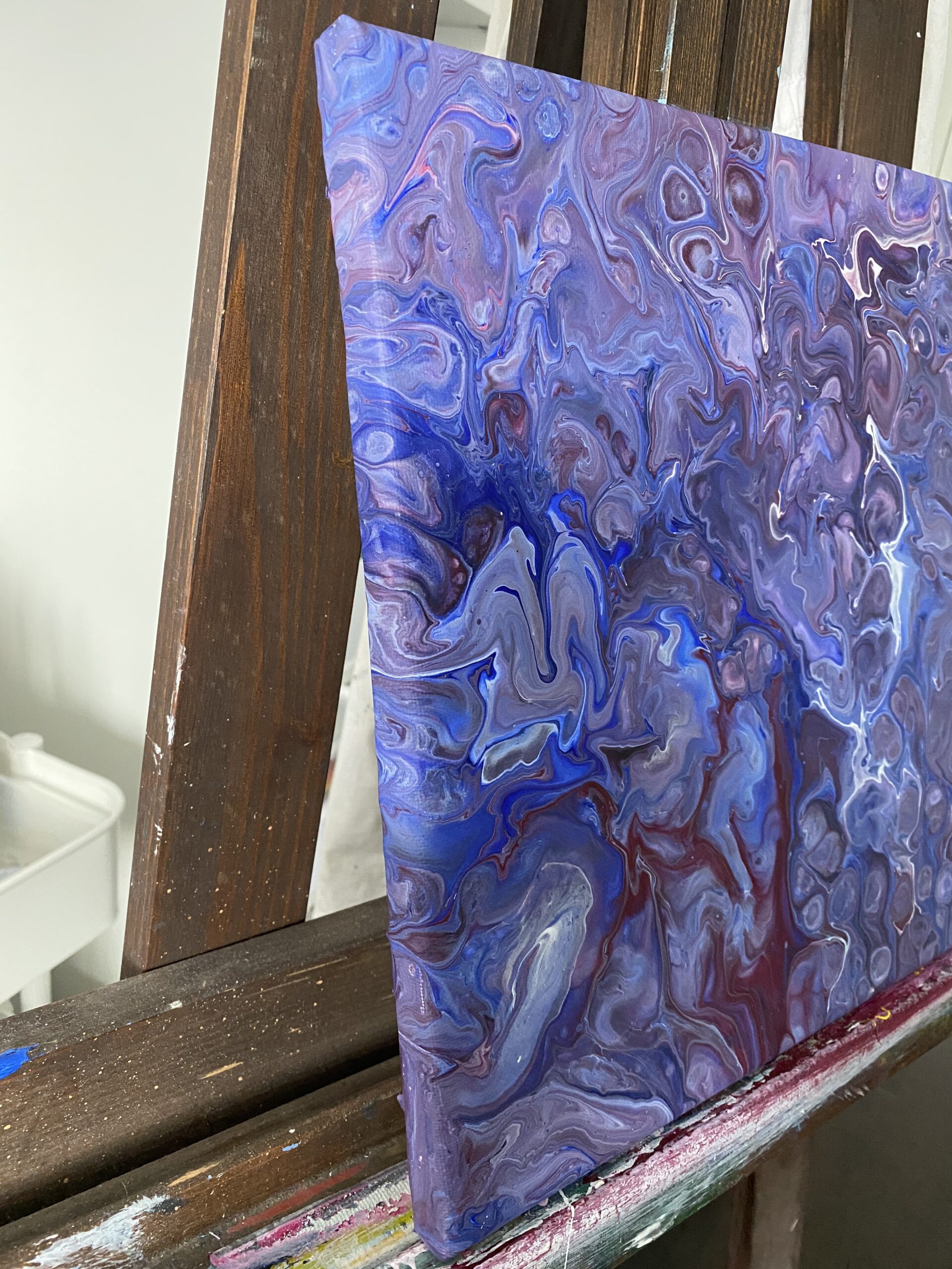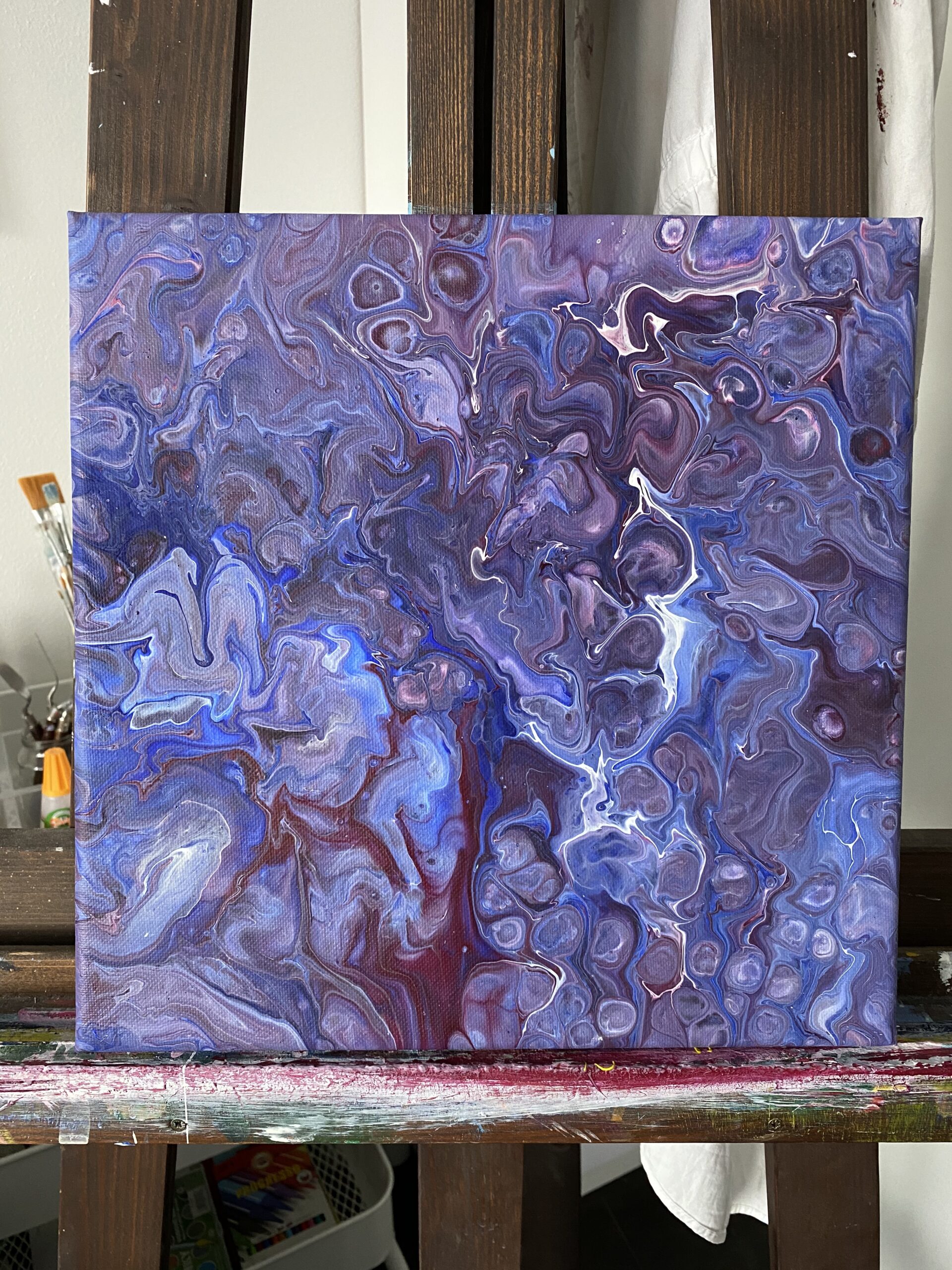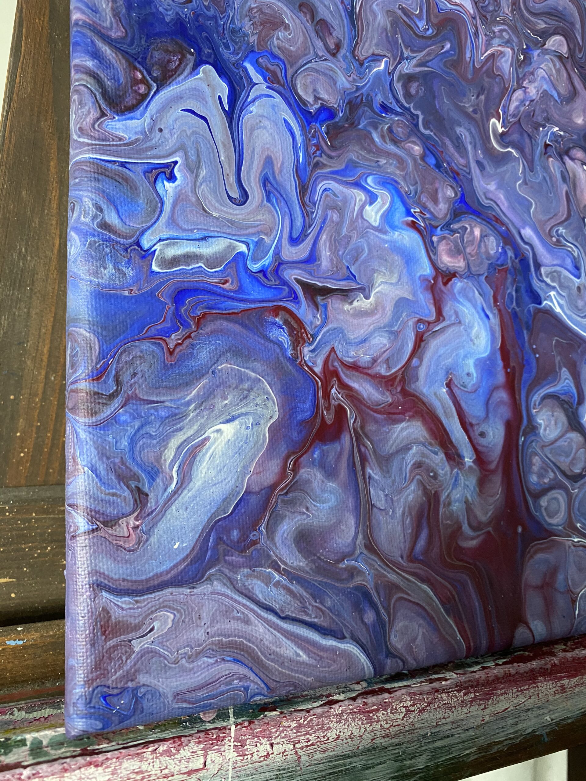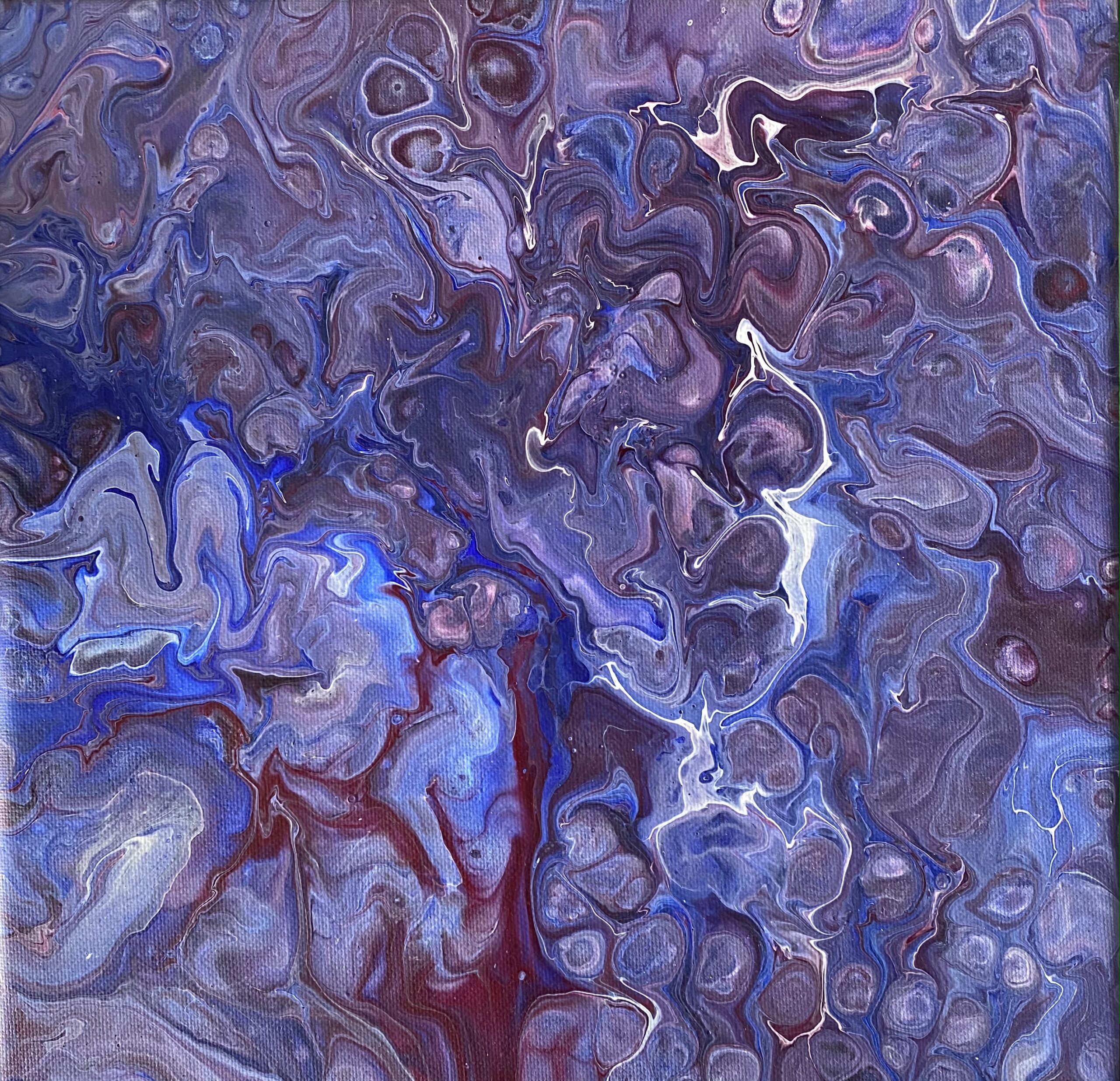 Akrylové lití je speciální technika a vznikají při ní úžasné obrazce. Při delším zahledění do tohoto obrazu se zdá, jako kdyby mě přenášel do vesmíru a je z něj cítit síla.